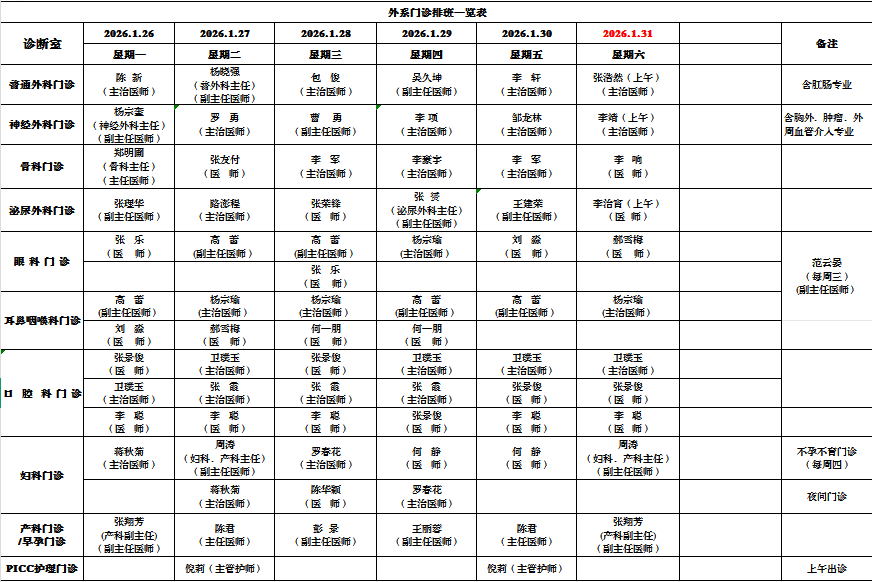 神经外科、肿瘤科、胸外科(含外周血管介入、周围血管外科专业)