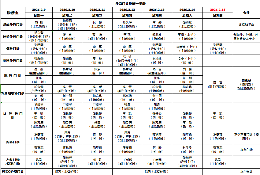 神经外科、肿瘤科、胸外科(含外周血管介入、周围血管外科专业)