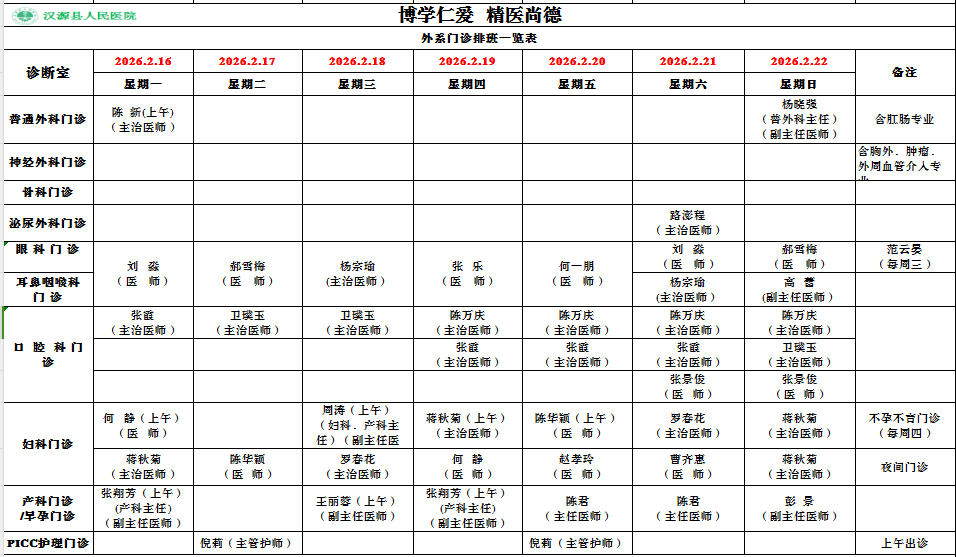 神经外科、肿瘤科、胸外科(含外周血管介入、周围血管外科专业)